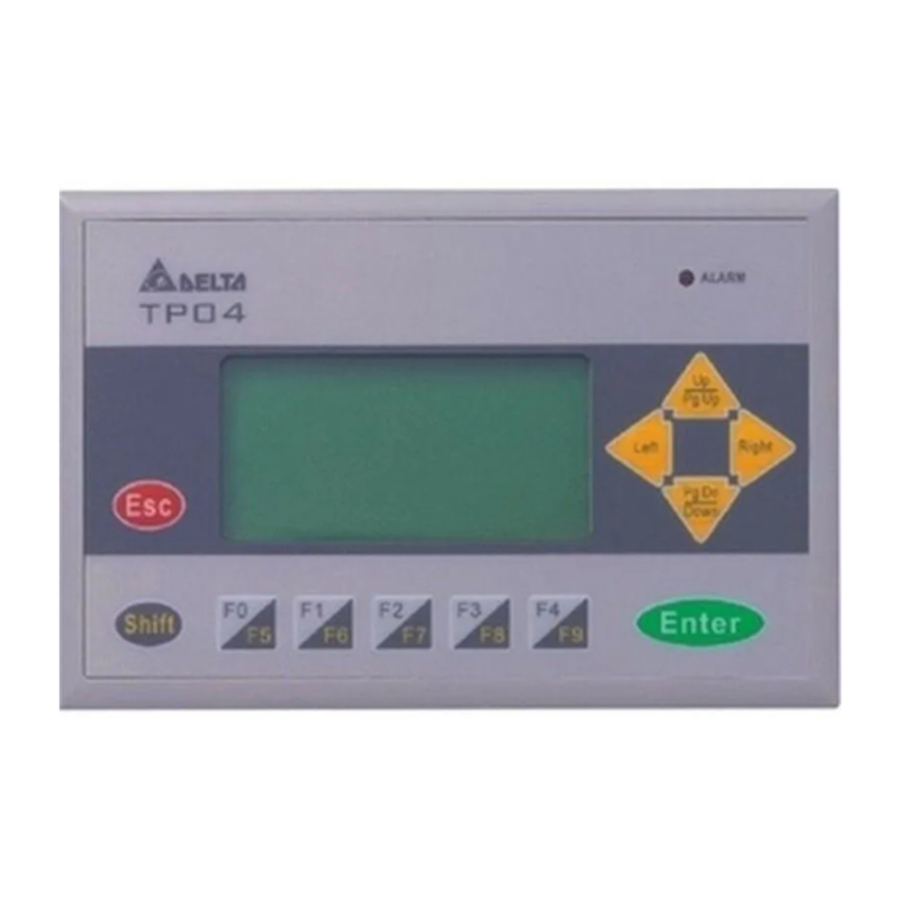 Köszönjük, hogy a Delta TP sorozatot választotta. A TP04G-AS2 nagy felbontású, 128×64 pontos, és 8×4 kínai karakter megjelenítésére képes. Többnyelvű megjelenítést és két beépített kommunikációs portot biztosít, az egyik RS-232 / RS-422, a másik pedig RS-485. Az RS-232 és az RS-485 egyszerre is használható. Ezenkívül beépített RTC-t, kommunikációs / riasztási LED-jelzőket is támogat. A felhasználó megvásárolhatja a programmásoló kártyát (opcionális) a beállítások és programok gyors másolásához, és időt takaríthat meg a letöltéssel. A szerkesztő szoftverhez különféle objektumok és képek állnak rendelkezésre a felhasználói igényekhez.