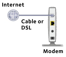 - Az útválasztóhoz mellékelt Ethernet-kábellel csatlakoztassa a modemet az útválasztó sárga WAN (Internet) portjához.