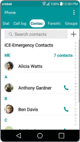 - Csoportok: (Groups) Könnyebben megtalálhatja a névjegyeket a csoportjaik alapján.