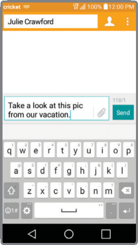 elemre egy névjegy kiválasztásához a címjegyzékből. - Koppintson az Üzenet beírása (Enter message) mezőre, és írja be a szöveget.