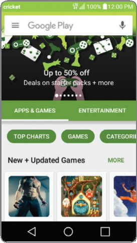 - Koppintson a képernyő tetején található keresősávra, hogy konkrét játékot vagy alkalmazást keressen a Play Áruházban.