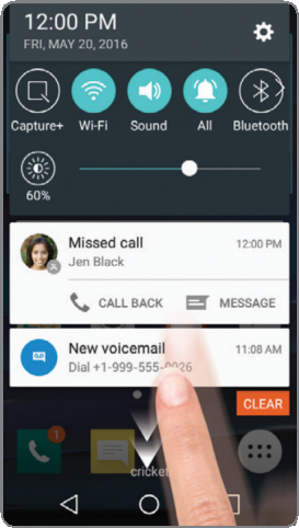 - Az Értesítési panel eléréséhez húzza lefelé bármelyik kezdőképernyő tetejéről.