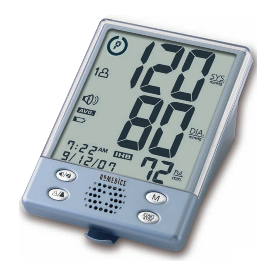 - Ez a vérnyomásmérő nem javítható a helyszínen. Ne használjon semmilyen eszközt a készülék felnyitásához, és ne kísérelje meg beállítani a készülék belsejében lévő dolgokat. Ha bármilyen problémája van ezzel a készülékkel, forduljon a HoMedics fogyasztói kapcsolatokhoz (az elérhetőségi adatok a jótállási részben találhatók).