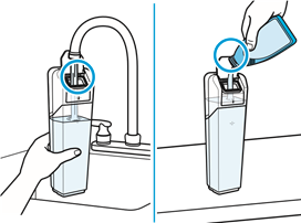 - A belső alkatrészek károsodásának elkerülése érdekében csak a készülékhez való tisztítószereket használjon. A jóváhagyott BISSELL formulákért tekintse meg a felhasználói kézikönyv "Power Mop Mode" (Elektromos felmosó mód) című részét.