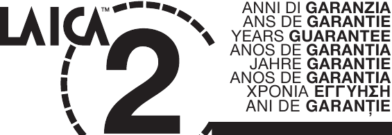 Erre a berendezésre a vásárlás dátumától számított 2 év garancia vonatkozik, amelyet a kereskedő bélyegzőjével vagy aláírásával, valamint az adóügyi fizetési bizonylattal kell igazolni, amelyet ehhez a dokumentumhoz mellékelni kell. Ez a garanciaidő megfelel a hatályos törvényeknek (2002. február 02-i 24. sz. olasz törvényerejű rendelet és az azt követő 2005. szeptember 03-i 206. sz. olasz törvényerejű rendelet a "Fogyasztók törvénye"), és csak akkor érvényes, ha a fogyasztó magánszemély. A Laica termékeket háztartási használatra tervezték; ezért a közüzemi vállalkozásokban való használatuk tilos. A garancia csak a gyártási hibákra terjed ki, és érvényét veszti, ha a kárt véletlen események, helytelen használat, gondatlanság vagy a termék nem rendeltetésszerű használata okozza. Csak a mellékelt tartozékokat használja; más tartozékok használata a garancia érvénytelenségéhez vezethet.