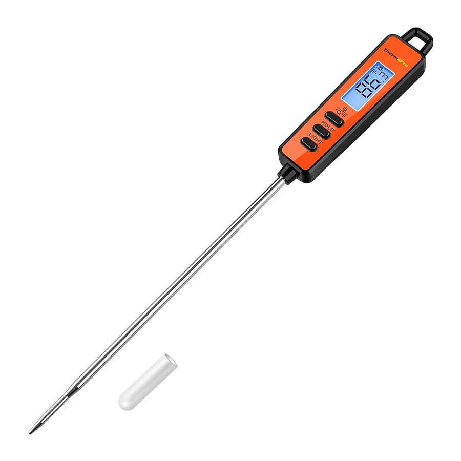 - A hőmérőt ideiglenes, kézi használatra tervezték. NE hagyja a sütőben. NE hagyja rendkívül forró ételekben vagy folyadékokban (572°F felett) 1 percnél tovább.
