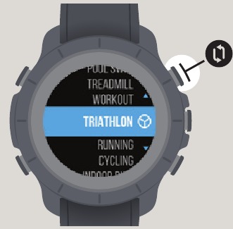 Tekan tombol kanan atas untuk masuk ke menu profil olahraga dan pilih profil olahraga TRIATHLON.