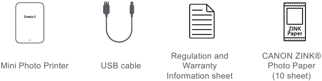 - Untuk hasil cetak optimal, gunakan kertas foto untuk Canon Zoemini.