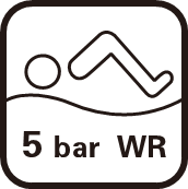 Jika "WATER RESISTANT" tertulis di bagian belakang casing, jam tangan Anda dirancang dan diproduksi untuk menahan hingga 3 bar, seperti kontak yang tidak disengaja dengan percikan air atau hujan, tetapi tidak dirancang untuk berenang atau menyelam. - Tahan air (5 bar)*