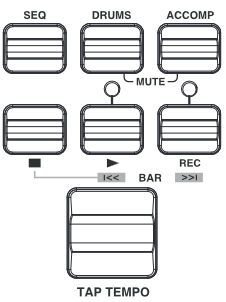 - TAP TEMPO (ketuk tempo) – Ketuk tombol ini pada kecepatan yang diinginkan untuk memasukkan tempo baru untuk Urutan. Anda juga dapat mengubah tempo dengan menahan tombol TAP TEMPO (ketuk tempo) dan menggunakan tombol VALUE DIAL (tombol nilai) atau VALUE UP / DOWN (nilai atas / bawah).