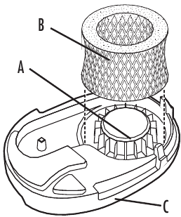 - Masukkan filter baru ke dalam dukungan filter di dasar (Gambar 1).