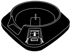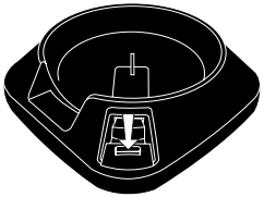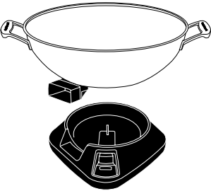 Tombol di tengah batang akan muncul. Sakelar pelepas wajan harus dalam posisi terbuka sebelum meletakkan wajan di atas dasar. - Untuk mengamankan wajan ke dasar, pegang wajan tepat di atas dasar dengan meluruskan area soket probe dengan potongan yang sesuai di dasar. Letakkan wajan di atas dasar.
