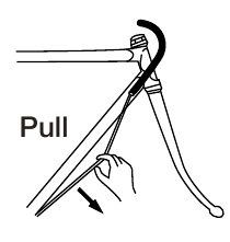 - Pastikan bahwa kabel perpindahan gigi dan kabel rem tidak saling menghalangi selama operasi pengereman. Jika saling menghalangi, dapat mengganggu pengereman. Pasang kabel sehingga masih memiliki kelonggaran bahkan ketika stang diputar sepenuhnya ke kedua arah.