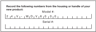 Saat menghubungi perusahaan, memesan ulang suku cadang, atau mengatur servis dari dealer resmi, Anda harus memberikan model dan nomor seri, yang dapat ditemukan pada stiker yang terletak di rumah unit. Salin nomor-nomor ini ke ruang yang disediakan di bawah ini.