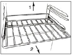 Untuk mengganti rak, pastikan rak bertumpu dengan aman pada braket penyangga lalu dorong ke dalam hingga rak terkunci pada tempatnya.