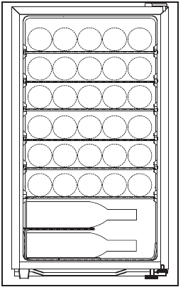 Tempatkan lima botol di masing-masing enam rak bagian atas.