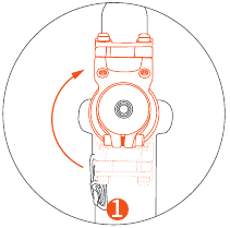 - Menyesuaikan batang: Putar batang 180° untuk menyejajarkannya dengan roda depan;