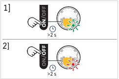 Tekan sekali tombol On/Off secara singkat untuk melihat LED pengaturan umpan balik yang sesuai dengan status saat ini: