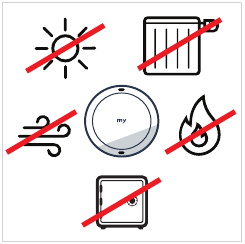 - Tempatkan jauh dari sumber panas atau dingin (idealnya 1 m dari radiator, AC, kompor kayu,...).