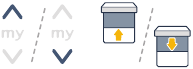 Untuk menggunakan tombol Naik, Stop/my, atau Turun, tombol tersebut harus diaktifkan: produk harus dihidupkan (lihat Menghidupkan Unit).