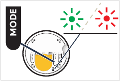 Tekan dan tahan tombol Mode (lebih dari 2 detik) untuk melihat warna lampu LED umpan balik pengaturan berkedip sesuai dengan pengelolaan mode Daya Rendah yang saat ini dipilih.