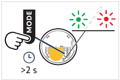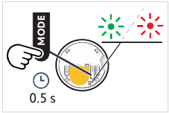 Tombol Mode digunakan untuk menonaktifkan atau mengaktifkan Mode Daya Rendah (LPM) tergantung pada jenis produk bermotor yang dikendalikan. Mode Daya Rendah harus diaktifkan jika Amy 1 RS100 io dikaitkan dengan drive otonom atau drive konsumsi rendah (hanya kompatibel dengan produk otonom Somfy).