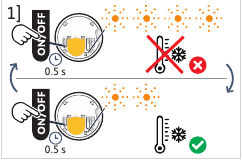 Tekan dua kali berturut-turut tombol On/Off secara singkat untuk mengaktifkan/menonaktifkan umpan balik suhu: