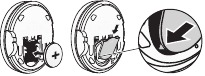 - Masukkan baterai CR2032 (3 V) dengan sisi polaritas (+) terlihat (di atas), Geser dan dorong untuk memasang di sisi kanan kontak baterai. Kemudian masukkan penyangga penutup di bagian bawah.