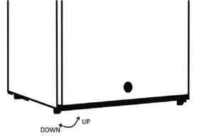Penting agar freezer tegak diratakan agar berfungsi dengan baik. Dapat dinaikkan atau diturunkan dengan memutar dua kaki penyeimbang di bagian bawah alat. Jika freezer tegak tidak diratakan selama pemasangan, pintu mungkin tidak menutup atau menyegel dengan benar, menyebabkan masalah pendinginan, embun beku, atau kelembapan. Sangat penting bahwa freezer tegak berada pada level agar berfungsi dengan baik.