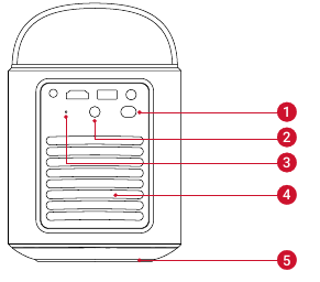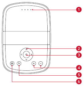 - Premere per 3 secondi per accendere il proiettore o accedere al menu di spegnimento