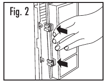 - Allineare il/i fermo/i sul lato del/dei filtro/i Aer1® con le guide all'interno dell'unità purificatore. Far scorrere delicatamente il/i filtro/i sulla guida. (Fig. 2)