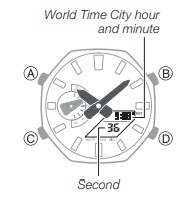 - I dati corretti della modalità World Time Mode dipendono dalle impostazioni corrette di Home City, ora e data nella Timekeeping Mode. Assicurarsi di configurare queste impostazioni correttamente.