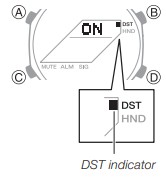 - L'indicatore DST appare per indicare che l'ora legale è attivata.