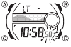 - Se si lascia l'orologio nella modalità dati lunari/maree o allarme per due o tre minuti senza eseguire alcuna operazione, passa automaticamente alla modalità orologio.