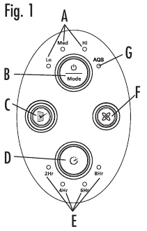 Il tuo purificatore d'aria è dotato di un sensore di qualità dell'aria per passare da velocità bassa, media e alta, in base alla qualità dell'aria interna circostante. Premere il pulsante Power /Mode (Alimentazione/Modalità) per selezionare l'impostazione AQS, il purificatore d'aria funzionerà su High (Alto) all'avvio per analizzare rapidamente la qualità dell'aria circostante. Una volta determinata la qualità dell'aria, l'unità può passare a una diversa velocità della ventola/filtrazione per una filtrazione ottimale. Una regolazione automatica della velocità non dimostra che l'aria è stata pulita, ma dimostra che la qualità dell'aria è stata determinata ed è stata selezionata una velocità ottimale. Il sensore di qualità dell'aria può regolare le velocità della ventola/filtrazione a velocità variabili mentre continua a misurare la qualità dell'aria durante l'uso.