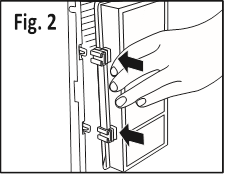 - Allineare la clip sul lato del filtro Aer1® con le guide all'interno dell'unità di purificazione. Far scorrere delicatamente il filtro sulla guida. (Fig. 2)