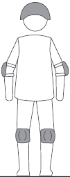 Indossa caschi e ginocchiere in caso di cadute e lesioni quando impari a guidare il monopattino, come mostrato nella figura.