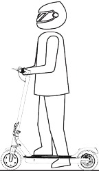 - Il peso massimo consentito deve essere mantenuto entro 264 lb (120kg) (conducente e oggetti inclusi) in ogni caso. Considerando un peso extra dovuto agli indumenti o altri accessori durante il viaggio e la gravità generata dalla velocità, lo scooter non lo supporterà se questo limite di carico viene superato.