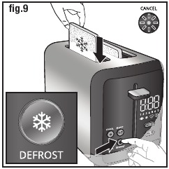 - Inserire una o due fette di pane congelato o toast nel tostapane (Fig. 9).