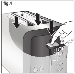 - Spingere completamente verso il basso la leva di tostatura, che si bloccherà in posizione (Fig. 4).