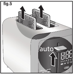 - Per facilitare la rimozione del pane, è possibile sollevare la leva del tostapane.