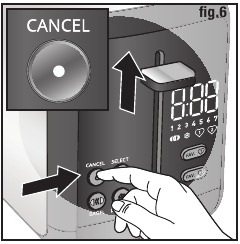 - Per interrompere il ciclo di tostatura, premere il pulsante CANCEL (STOP) (ANNULLA (ARRESTA)) (Fig. 6).