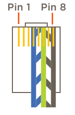 Connettore RJ-45 (pin dorati rivolti verso l'alto)