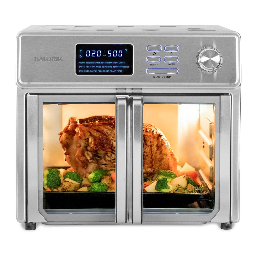 Scopri la nuova generazione di forni friggitrici ad aria! Il Kalorik 26 Quart Digital Maxx Air Fryer Oven combina più elettrodomestici in uno. Funziona come friggitrice ad aria, arrosti, grill, girarrosto, disidratatore, forno, tostapane, forno per pizza e altro ancora. Il Kalorik Digital Maxx Air Fryer Oven utilizza la speciale tecnologia Turbo Maxx per cucinare il cibo più velocemente che mai. Elementi riscaldanti superiori e inferiori personalizzati forniscono una distribuzione uniforme del calore per risultati di cottura perfetti. Un sistema di flusso d'aria ottimizzato e una ventola turbo ad alte prestazioni sono progettati per la massima circolazione dell'aria, offrendo la stessa consistenza croccante e il sapore ricco dei cibi fritti, con poco o nessun olio. Questo riduce grassi e calorie per pasti più sani. L'impostazione girarrosto ruota l'accessorio spiedo incluso durante la cottura, consentendo alla carne di arrostire uniformemente nei propri succhi e sviluppare il massimo sapore. Il Kalorik Digital Maxx Air Fryer Oven raggiunge fino a 500°F, perfetto per scottare carne o verdure alla perfezione caramellata. Il forno può contenere un pollo grande, una pizza da 12" o fino a 9 fette di pane tostato nella sua cavità.