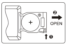 Fare riferimento all'illustrazione per aprire il vano batteria, inserire la batteria CR2032 e chiudere il vano.