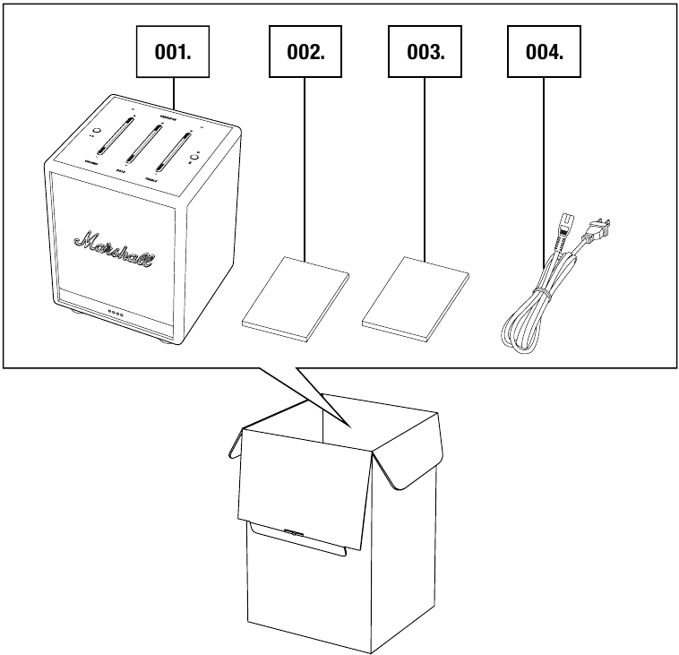 001. Scaricare l'app Marshall Voice e seguire le istruzioni nell'app per configurare l'altoparlante.