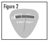 NOTA: Dopo 60 minuti di utilizzo, l'indicatore FilterCleanTM (fare riferimento alla Figura 2 per un primo piano dell'indicatore) si sposterà dalla posizione OFF (SPENTA) e indicherà le condizioni del filtro.