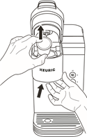 Per rimuovere il portacapsule K-Cup® dalla macchina, sollevare la maniglia e afferrare la parte superiore del portacapsule K-Cup® con una mano mentre si spinge verso l'alto la parte inferiore del portacapsule K-Cup® dall'altra parte finché non si sgancia. Dopo la pulizia, allineare il portacapsule K-Cup® con l'apertura, usando le due nervature anteriori come guida, e incastrarlo in posizione dall'alto.