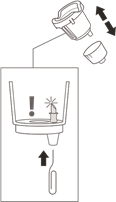 Lavare l'imbuto garantisce un'esperienza di bevanda fresca. L'imbuto deve essere lavato regolarmente e può essere rimosso dal portacapsule K-Cup® tirandolo finché non si stacca. Per riposizionarlo, orientare gli agganci all'incavo e semplicemente incastrarlo nuovamente sul portacapsule K-Cup®.