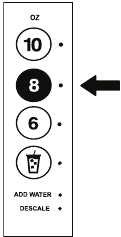 Continuare a erogare 8oz finché la spia AGGIUNGI ACQUA non si illumina.